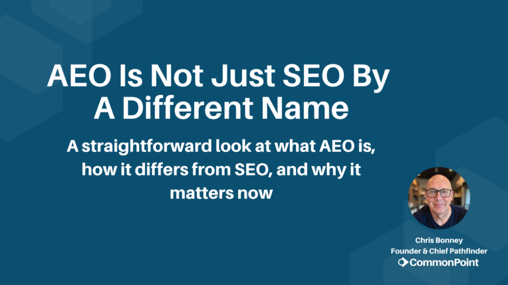 At CommonPoint, I do not think of AEO as an isolated tactic. I see it as part of the larger job of making a company easier to understand, easier to trust, and easier to recommend.